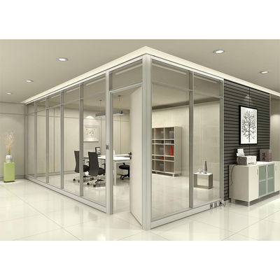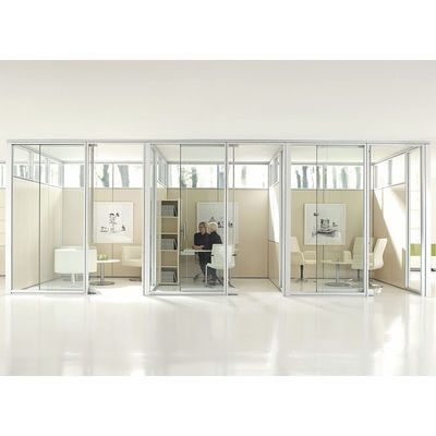 Mampara interior moderna de cristal con estructura de aluminio para espacios de oficina. Las paredes divisorias de vidrio permiten que la luz fluya por todo el espacio manteniendo un ambiente tranquilo, promoviendo tanto la transparencia como la productividad. Ideal para crear salas de conferencias abiertas o garantizar abundante luz natural para todos los empleados.
